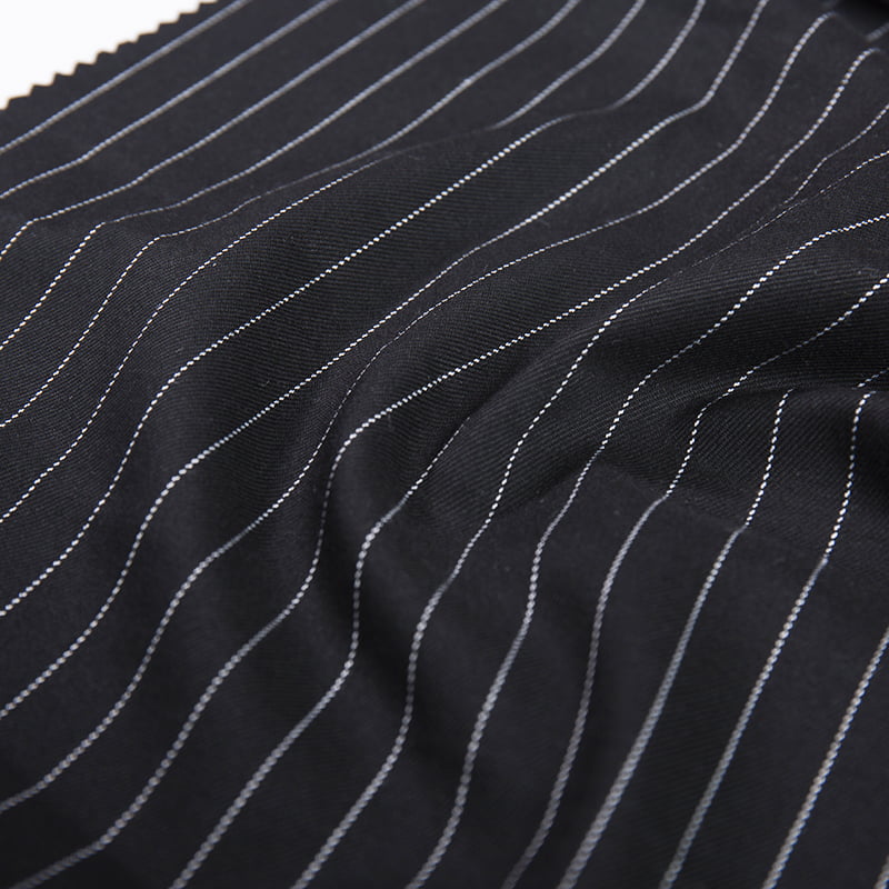 Das breite Streifendesign mit seinen breiten Linieneigenschaften verleiht dem Stoff ein atmosphärisches und kühnes visuelles Erlebnis. Dieses Design macht den Stoff visuell auffälliger und kann die Aufmerksamkeit der Menschen schnell erregen. Im Kleidungsdesign werden häufig breite Streifenstoffe verwendet, um einen Teil oder den Gesamtumriss der Kleidung wie Kragen, Manschetten und Körper eines Mantels und den Saum eines Rocks zu betonen, um die Schicht und dreidimensionales Gefühl der Kleidung hervorzuheben.
